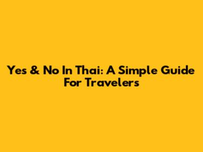 Yes & No In Thai: A Simple Guide For Travelers