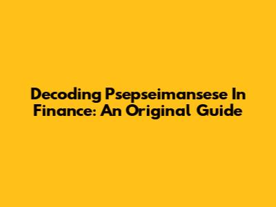 Decoding 'Psepseimansese' In Finance: An Original Guide