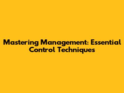 Mastering Management: Essential Control Techniques
