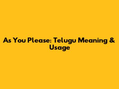 As You Please: Telugu Meaning & Usage
