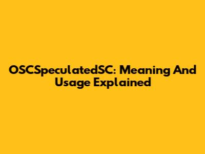 OSCSpeculatedSC: Meaning And Usage Explained