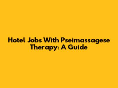 Hotel Jobs With Pseimassagese Therapy: A Guide