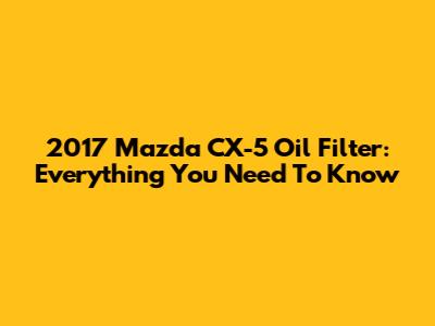 2017 Mazda CX-5 Oil Filter: Everything You Need To Know