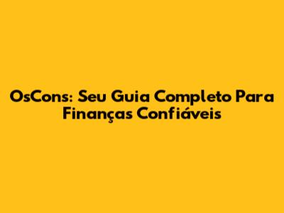 OsCons: Seu Guia Completo Para Finanças Confiáveis