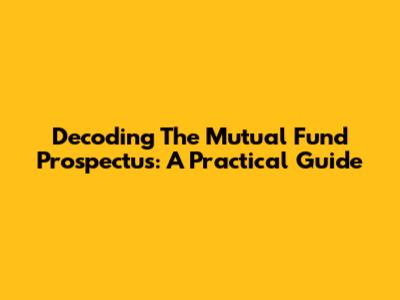 Decoding The Mutual Fund Prospectus: A Practical Guide