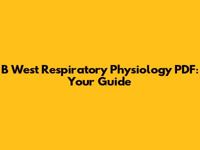B West Respiratory Physiology PDF: Your Guide