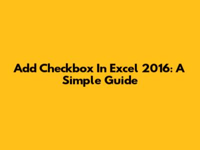 Add Checkbox In Excel 2016: A Simple Guide
