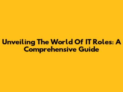 Unveiling The World Of IT Roles: A Comprehensive Guide