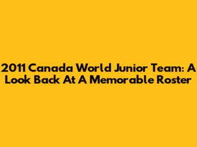 2011 Canada World Junior Team: A Look Back At A Memorable Roster