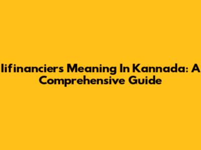 Iifinanciers Meaning In Kannada: A Comprehensive Guide