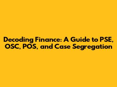 Hey finance enthusiasts! Ever feel like you're navigating a maze of acronyms and complex concepts? You're not alone! Today, we're diving deep into the world of finance, specifically focusing on the intriguing interplay of PSE (Philippine Stock Exchange), OSC (Options Clearing Corporation), POS (Point of Sale), and case segregation. Trust me, understanding these elements is crucial whether you're a seasoned investor, a budding entrepreneur, or simply someone keen on managing their finances effectively. So, buckle up, because we're about to demystify these key components and their significance.