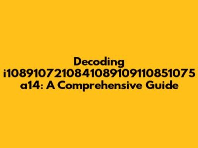 Hey guys! Ever stumble upon a string of numbers and letters like i1089107210841089109110851075 a14 and wonder what in the world it means? Well, you're not alone! These cryptic codes often pop up in various contexts, from product identification to technical specifications. Today, we're diving deep into the meaning behind i1089107210841089109110851075 a14, breaking it down piece by piece, and giving you a comprehensive understanding. Get ready to unlock the secrets hidden within this seemingly random sequence! We'll explore where you might encounter this code, what it typically represents, and how to interpret it. Buckle up, because by the end of this guide, you'll be speaking the language of i1089107210841089109110851075 a14 like a pro. This guide will help you understand its importance and how to utilize this information effectively.