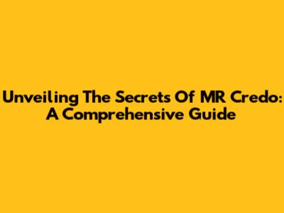 Unveiling The Secrets Of MR Credo: A Comprehensive Guide