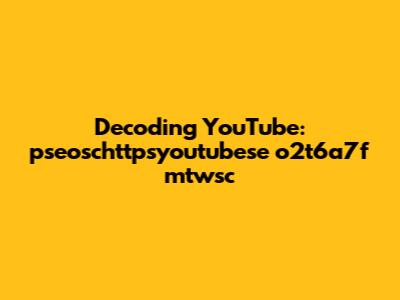 Given the structure and context, let's explore what "pseoschttpsyoutubese o2t6a7f mtwsc" might actually represent. Here are a few possibilities:
