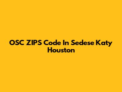 OSC ZIPS Code In Sedese Katy Houston