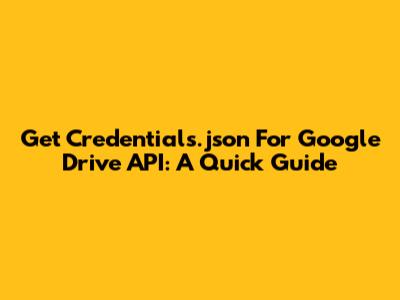 Get Credentials.json For Google Drive API: A Quick Guide