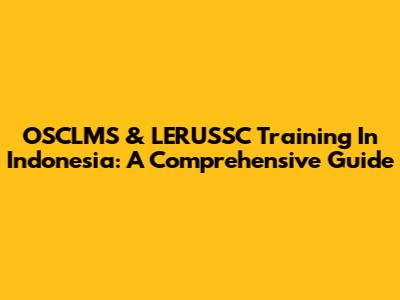 OSCLMS & LERUSSC Training In Indonesia: A Comprehensive Guide
