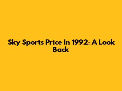 Sky Sports Price In 1992: A Look Back