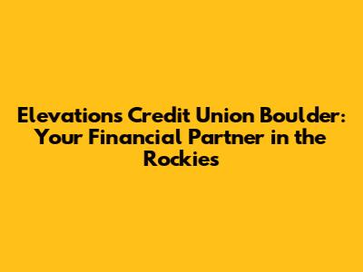 Hey there, Boulder folks! đź‘‹ Are you on the hunt for a reliable financial institution that understands the unique needs of our vibrant community? Look no further than Elevations Credit Union in Boulder! This isn't just your run-of-the-mill bank, guys. Elevations is a member-owned, not-for-profit financial cooperative dedicated to serving its members and the Boulder community. They're all about providing top-notch financial services while keeping your best interests at heart. In this article, we'll dive deep into everything you need to know about Elevations Credit Union in Boulder, from their services and benefits to how you can become a member and start your journey towards financial wellness. Whether you're a long-time local, new to town, or just exploring your options, this guide is your go-to resource. So, grab a coffee (or a local brew!), get comfy, and let's explore what makes Elevations Credit Union a standout choice for your financial needs. We'll explore their history, values, services, and everything else that makes them a cornerstone of the Boulder community. Let's get started, shall we?