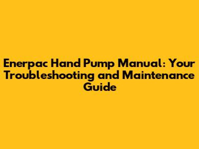 Hey everyone! Today, we're diving deep into the Enerpac Hydraulic Hand Pump Manual, a crucial resource for anyone working with these powerful tools. Whether you're a seasoned pro or just starting out, understanding your Enerpac hand pump manual is key to safe operation, peak performance, and extending the lifespan of your equipment. So, let's break it down! We'll cover everything from the basics to advanced troubleshooting and maintenance tips.