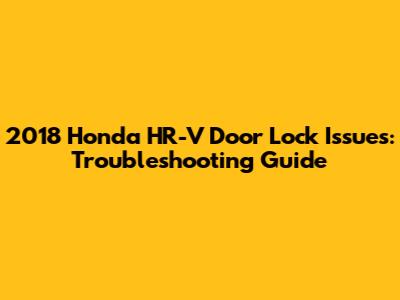 2018 Honda HR-V Door Lock Issues: Troubleshooting Guide