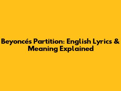 Beyoncé's Partition: English Lyrics & Meaning Explained