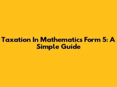 Taxation In Mathematics Form 5: A Simple Guide
