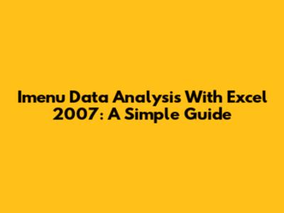 Imenu Data Analysis With Excel 2007: A Simple Guide