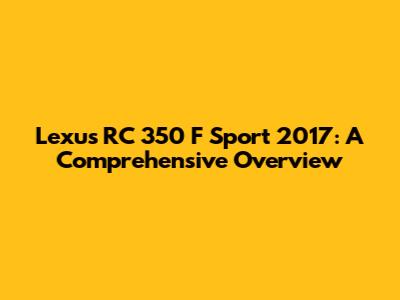 Lexus RC 350 F Sport 2017: A Comprehensive Overview