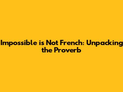 Have you ever heard the saying, "Impossible is not French"? It's a catchy phrase, often used to convey a sense of boundless optimism and the belief that anything can be achieved with enough determination. But where does this saying come from, and what does it really mean? Guys, let's dive deep into the origins, history, and cultural significance of this intriguing proverb. Understanding the context and nuances behind "impossible n'est pas français" can offer some serious insights into French culture and its influence on the world stage. So buckle up, because we are about to embark on an exciting journey of discovery.