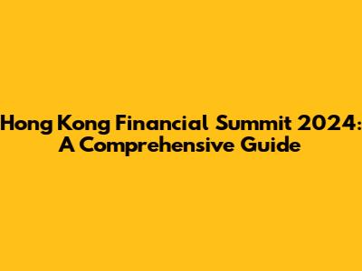 Hong Kong Financial Summit 2024: A Comprehensive Guide