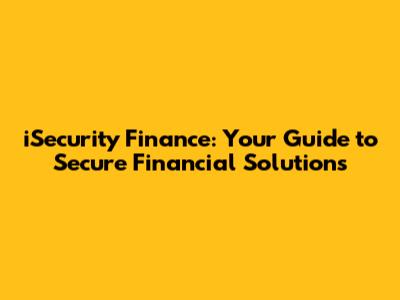 - How does iSecurity Finance protect my financial information? They use advanced security measures, including encryption, multi-factor authentication, fraud monitoring, and regular security audits. They are committed to protecting your financial data with the latest technologies and protocols.