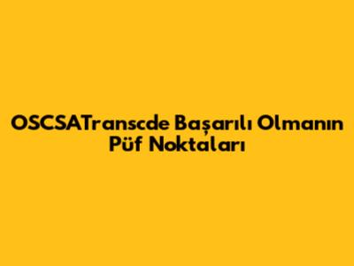 OSCSATransc'de Başarılı Olmanın Püf Noktaları
