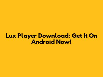 Lux Player Download: Get It On Android Now!