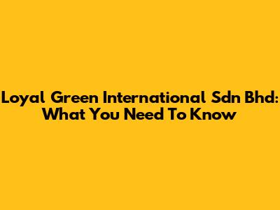 Loyal Green International Sdn Bhd: What You Need To Know