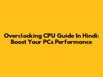 Overclocking CPU Guide In Hindi: Boost Your PC's Performance