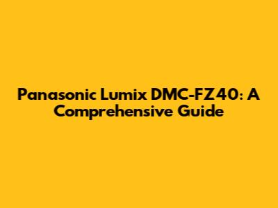 Panasonic Lumix DMC-FZ40: A Comprehensive Guide