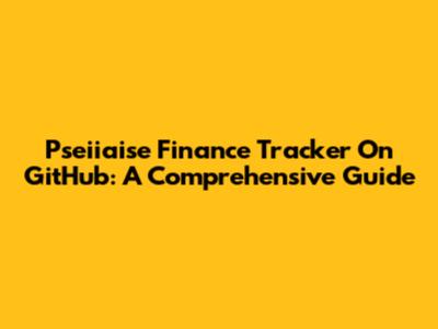 Pseiiaise Finance Tracker On GitHub: A Comprehensive Guide
