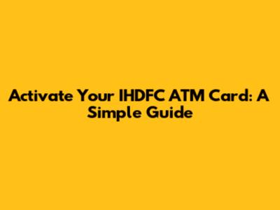 Activate Your IHDFC ATM Card: A Simple Guide