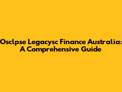Osclpse Legacysc Finance Australia: A Comprehensive Guide