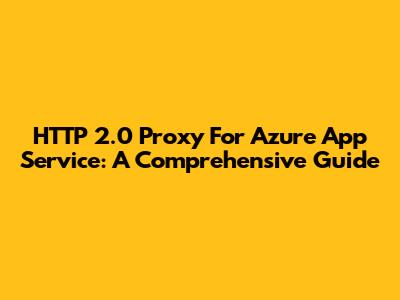 HTTP 2.0 Proxy For Azure App Service: A Comprehensive Guide