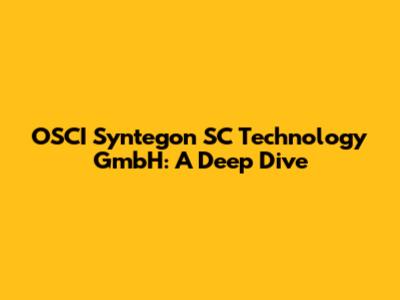 OSCI Syntegon SC Technology GmbH: A Deep Dive