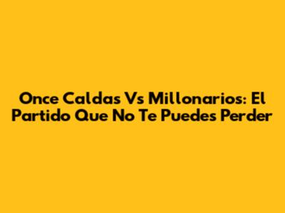 Once Caldas Vs Millonarios: El Partido Que No Te Puedes Perder