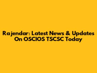 Rajendar: Latest News & Updates On OSCIOS TSCSC Today