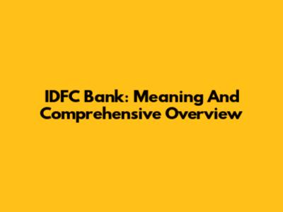 IDFC Bank: Meaning And Comprehensive Overview