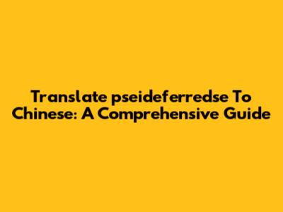 Translate 'pseideferredse' To Chinese: A Comprehensive Guide