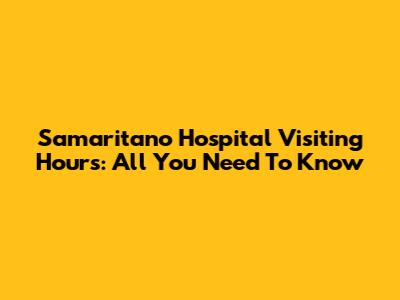 Samaritano Hospital Visiting Hours: All You Need To Know