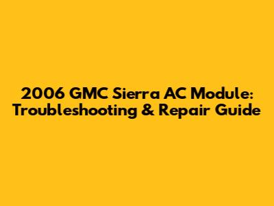 2006 GMC Sierra AC Module: Troubleshooting & Repair Guide