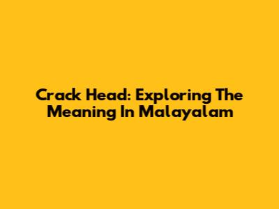 Crack Head: Exploring The Meaning In Malayalam