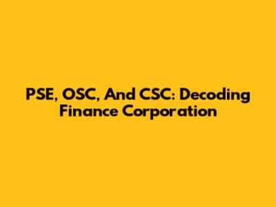 PSE, OSC, And CSC: Decoding Finance Corporation